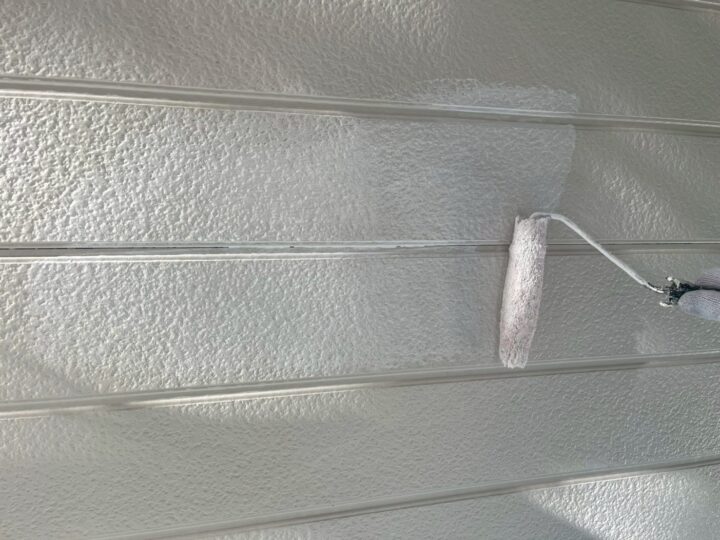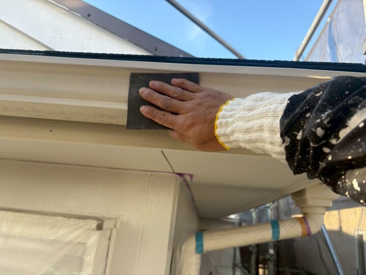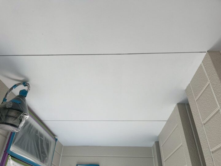 軒裏専用塗料を二回に分けて、塗っていきます。