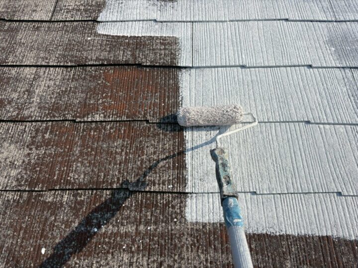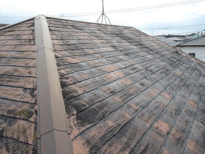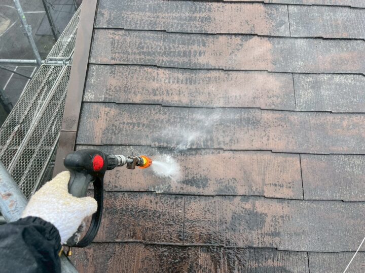 屋根外壁ともに高圧洗浄でチョーキングや苔をしっかりと落とします。