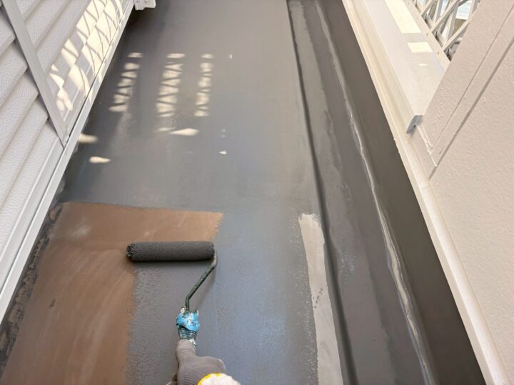 2回目を塗り、塗膜の厚み、均一性、美観性を確保出来ます。