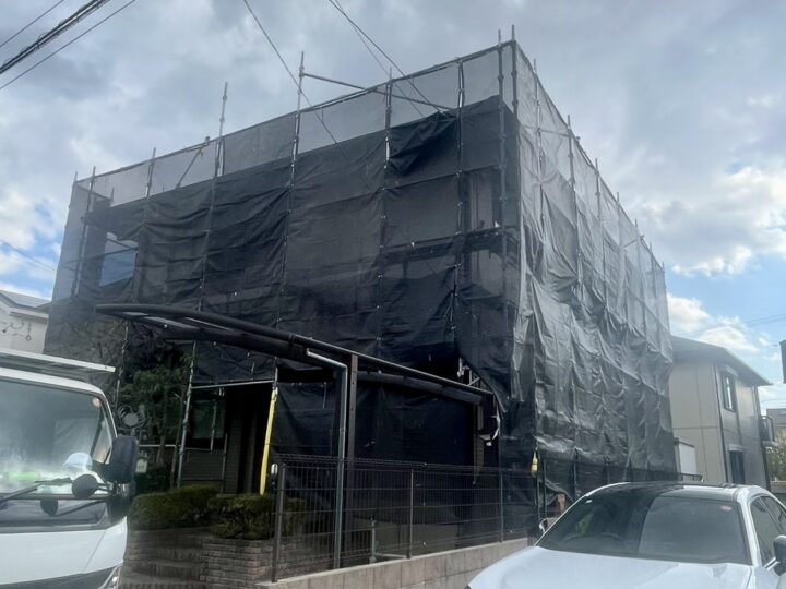 足場を全面に掛けます。