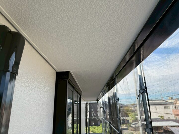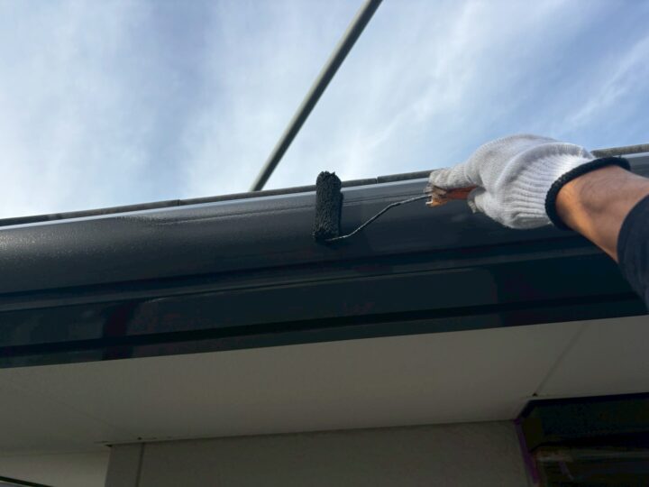 軒裏専用塗料を二回に分けて、塗っていきます。